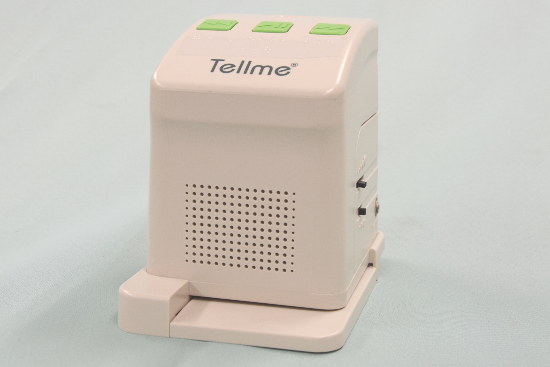 印刷物上の切手大のSPコードを読み取り、印刷された活字情報を音声で読み上げる機器。4つのボタンで簡単に操作できます。読み取ったSPコードを100個まで記憶可能。サイズは、幅10×奥行14.2×高さ14cm。重さは600g。