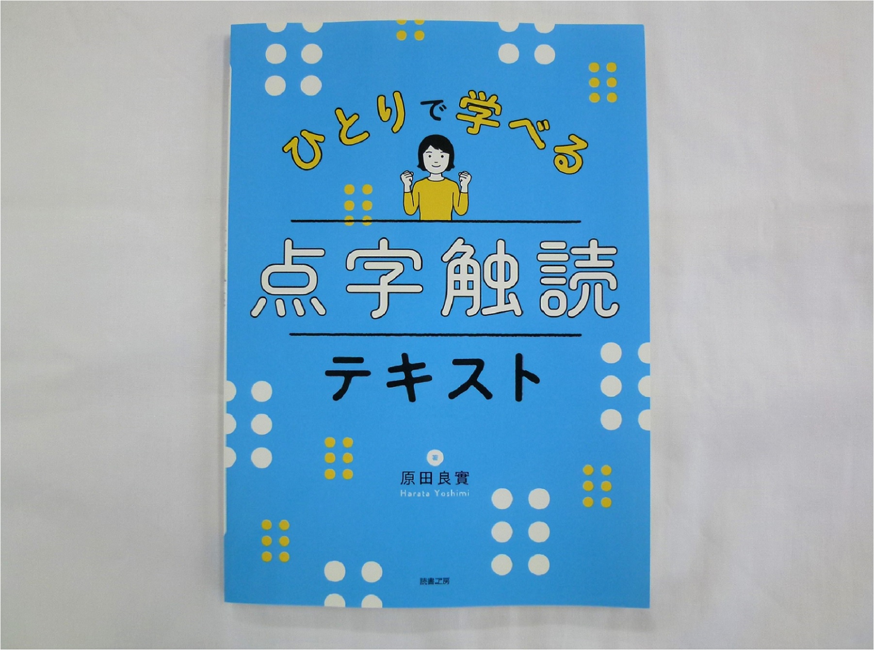 点字の触読をひとりで学ぶことができるテキスト。墨字テキストの他に、Lサイズの点字教材がセットになっており、行たどりから五十音・濁音・半濁音・拗音・拗半濁音・数字・アルファベット・記号・特殊音・おもな単語記号等を順番に覚えていくことができます。各項目ごとに掲載されているQRコードをスマートフォンのカメラ機能で読みとると、該当ページの音声版を再生することができます。凸面点字一覧表付き。当法人理事原田良實著。活字教材はB5判・122ページ。点字教材はL点字バインダーに48枚。